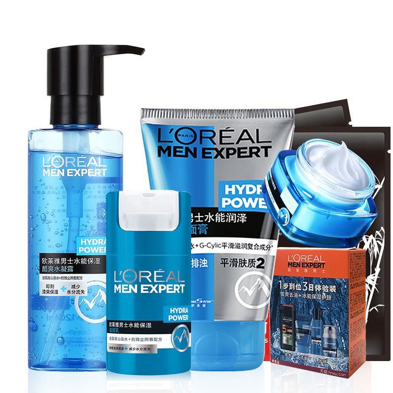 巴黎欧莱雅男士套装水能控油补水保湿洗面奶面霜爽肤水乳液护肤品