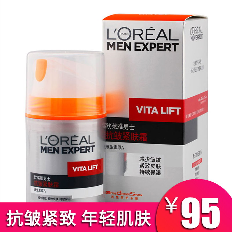 欧莱雅男士抗皱紧肤霜50ml面部擦脸面霜滋润补水控油保湿乳液护肤