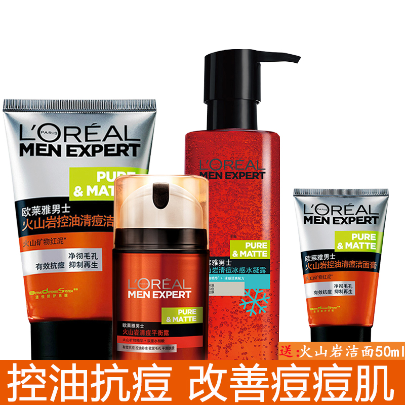 的热门产品欧莱雅男士套装火山岩控油祛痘去黑头收缩毛孔洗面奶化妆品护肤品