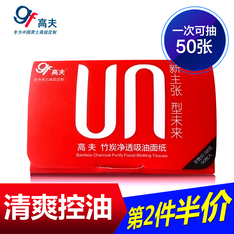 gf高夫竹炭净透吸油面纸正装50张 瞬间吸油纸 清爽控油 男士护肤