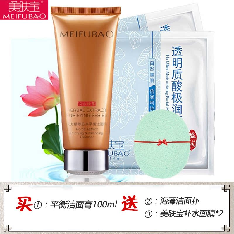 美肤宝汉方精萃芯净平衡洁面膏100ml 清爽控油洗面奶清洁保湿
