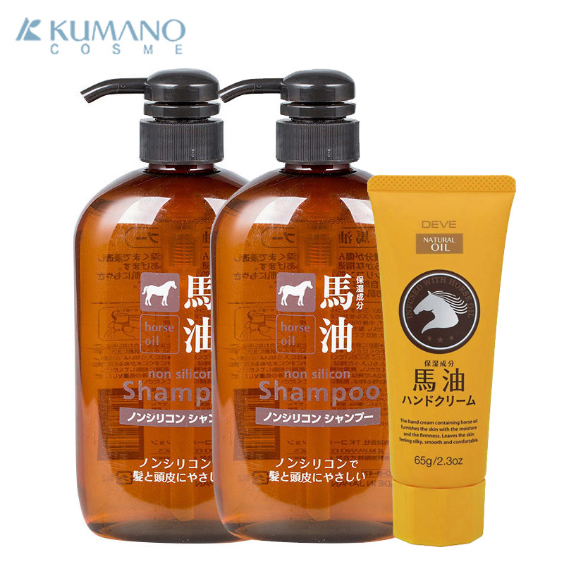日本熊野油脂天然弱酸性无硅马油保湿洗发水2瓶护手霜3件限定套装