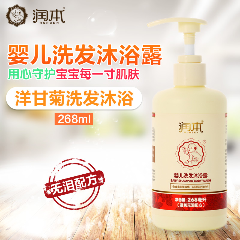 润本金盏花洗发沐浴露二合一 宝宝洗发沐浴液 无泪配方268ml