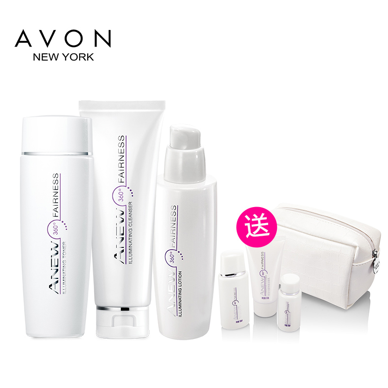 雅芳新活光感净澈 洁面乳+柔肤水+美白亮采乳液精华液面霜 套装