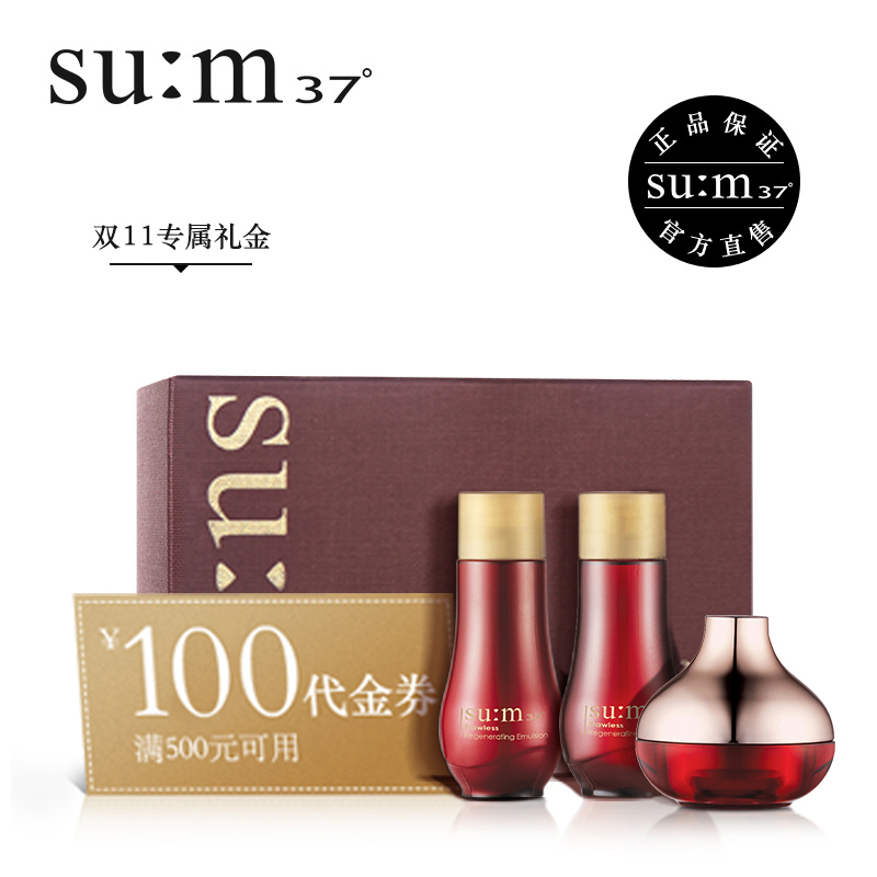 su:m37度苏秘净透无暇水乳霜3件套+呼吸100元代金韩国
