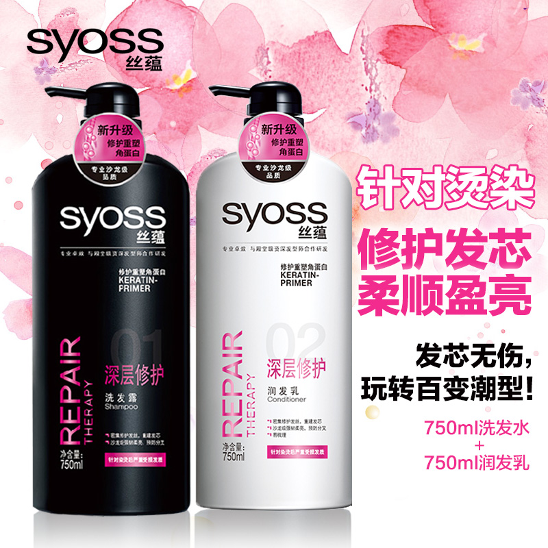 syoss/丝蕴深层修护洗护套装洗发水750ml护发素750ml烫染受损发质