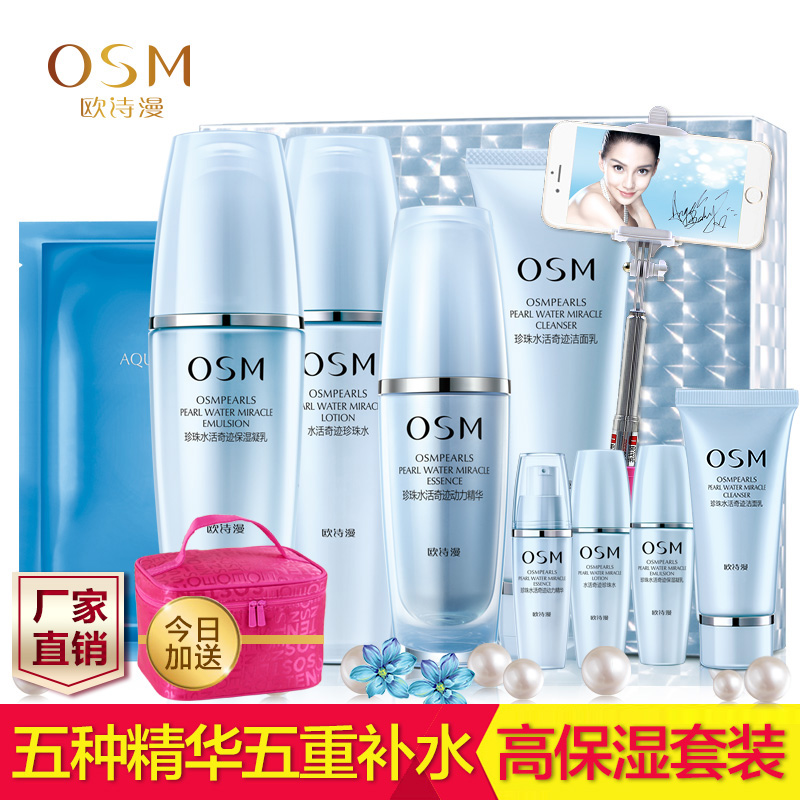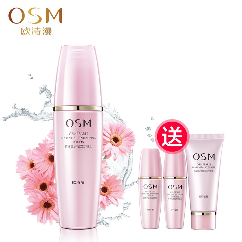 OSM欧诗漫套装 水活洗面奶珍珠水乳霜组合补水保湿持久滋润护肤品