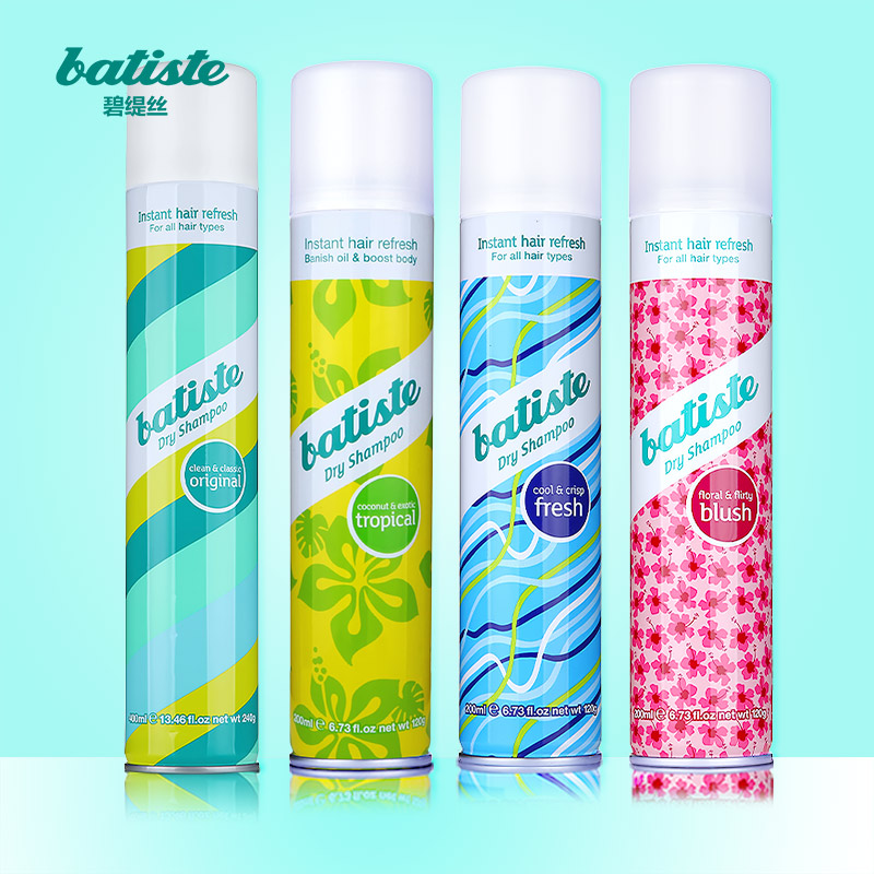产地:英国 品牌:Batiste/碧缇丝 洗发护发单品:免水洗发喷雾(异国情调) 适用发质:所有发质 规格类型:正常规格 化妆品净含量:【新品】迷人花香200ml+果香樱桃50ml 化妆品特性:使用效果 洗发水 功效:丰盈蓬松 改善毛躁 改善头痒 查看全文