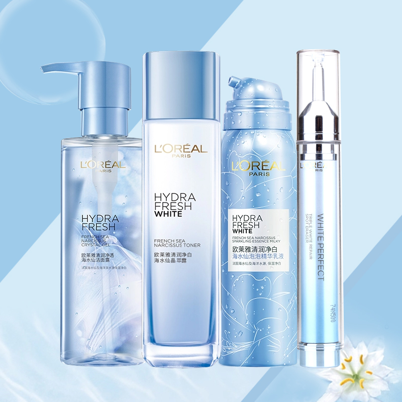 欧莱雅清润净白海水仙四件套 补水保湿提亮肤色改善暗沉滋润