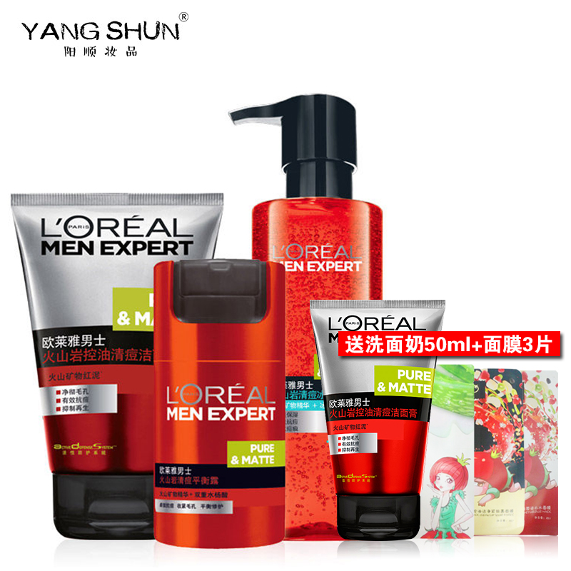 的热门产品欧莱雅男士洗面奶火山岩控油祛痘去黑头收缩毛孔化妆品护肤品套装