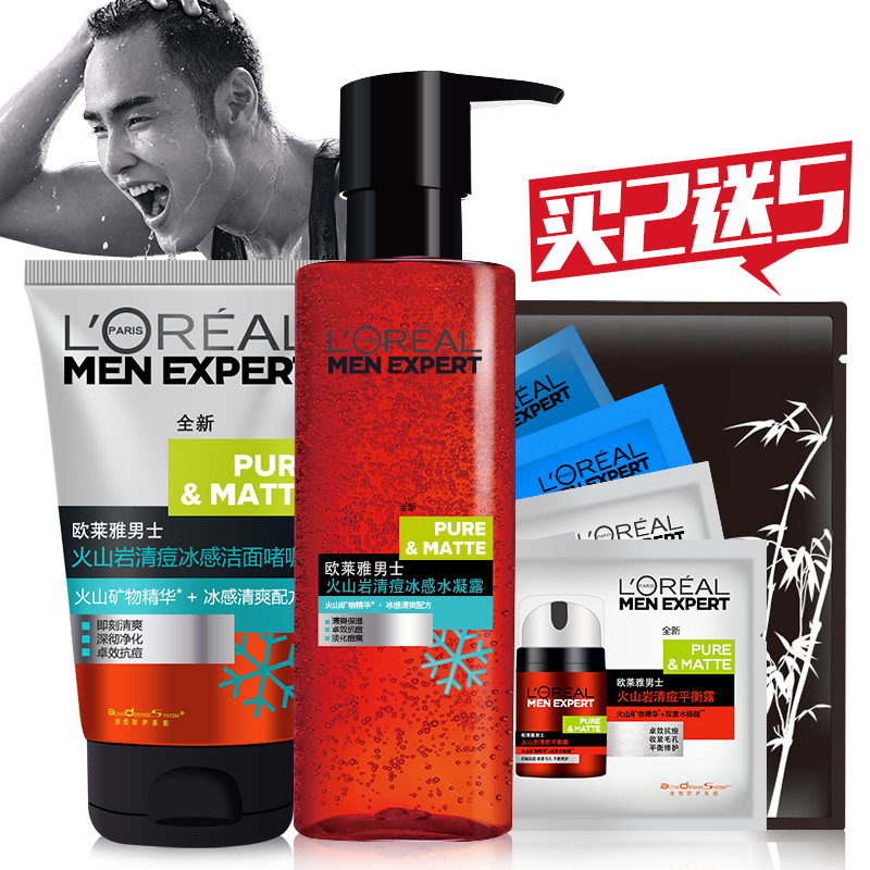 L'oreal/欧莱雅男士火山岩控油祛痘套装深层清洁滋润修护护肤