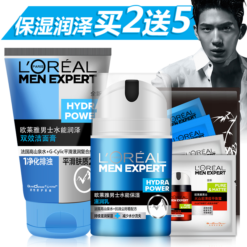 欧莱雅男士护肤品补水套装洗面奶清洁保湿滋润乳霜精华露化妆品