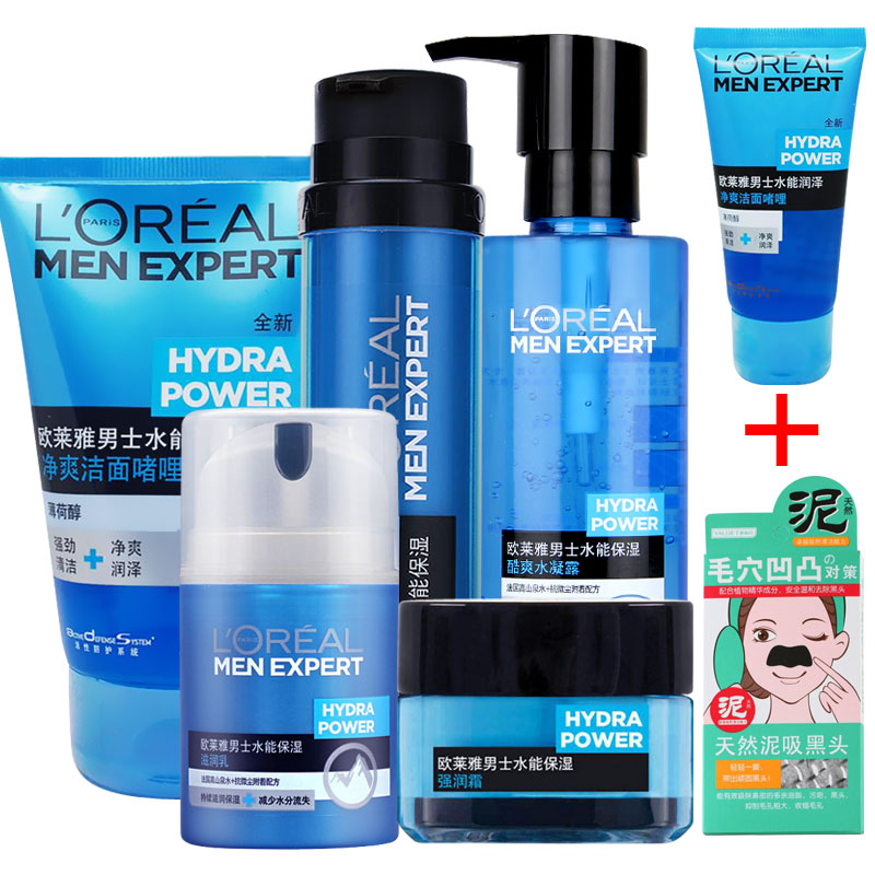 专柜正品欧莱雅男士水能保湿套装洁面水凝露精华露滋润乳强润霜