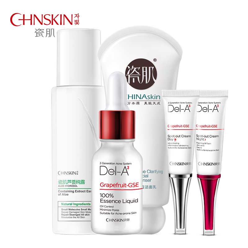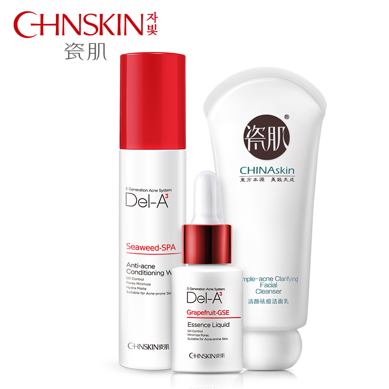 瓷肌祛痘4件套装 男女祛粉刺青春痘收缩毛孔控油补水化妆品套装