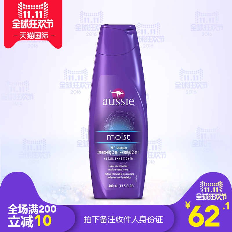 功效:深度滋养 深层修复 深度清洁 滋润营养 烫染修复 品牌:AUSSIE 型号:Aussie袋鼠洗发水400ml 是否量贩装:否 净含量:400mL 规格类型:常规单品 适用发质:所有发质 是否进口:进口 查看全文
