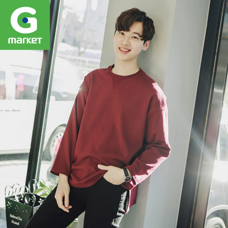 的热门产品韩国新品 男装[JOGUNSHOP]韩版宽松休闲圆领纯色简约长袖T恤