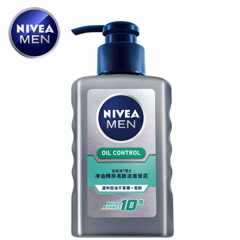 Nivea/妮维雅男士洗面奶 净油精华亮肤洁面炭泥提亮肤色净化黑头
