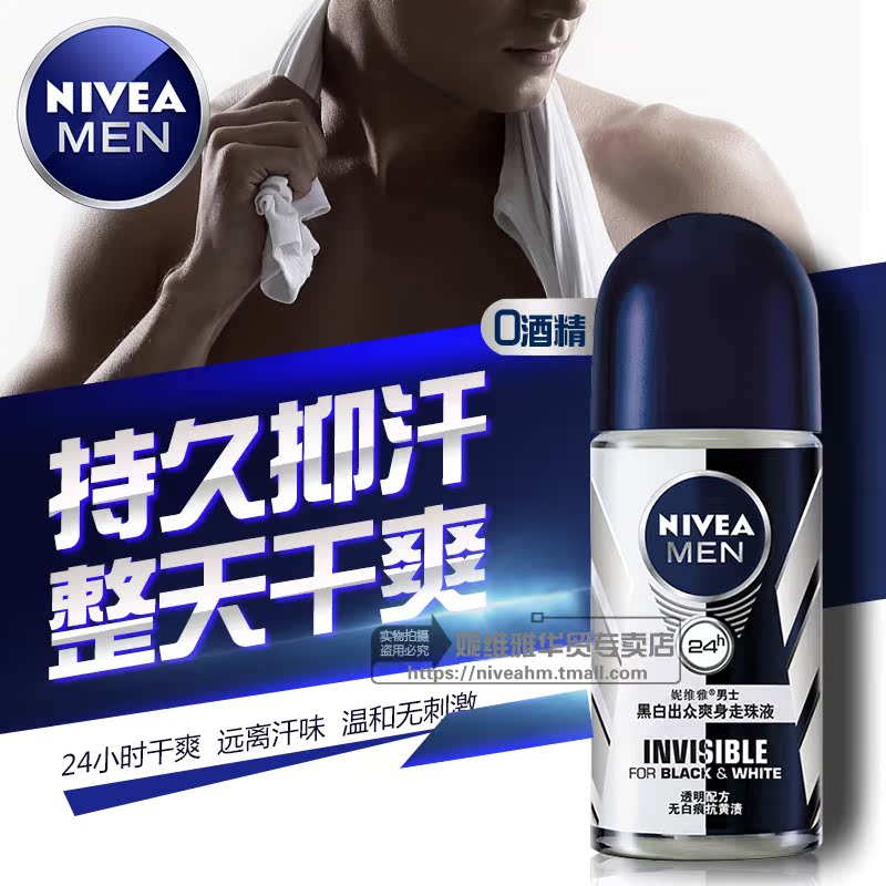 妮维雅男士黑白出众爽身走珠50ml干爽止汗不留印渍香体温和收毛孔