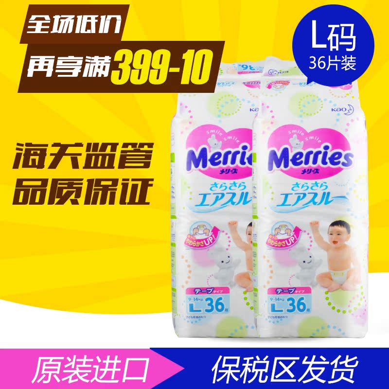 花王l36 纸尿裤大号尿不湿日本l码 l号尿不湿纸尿裤妙而舒merries