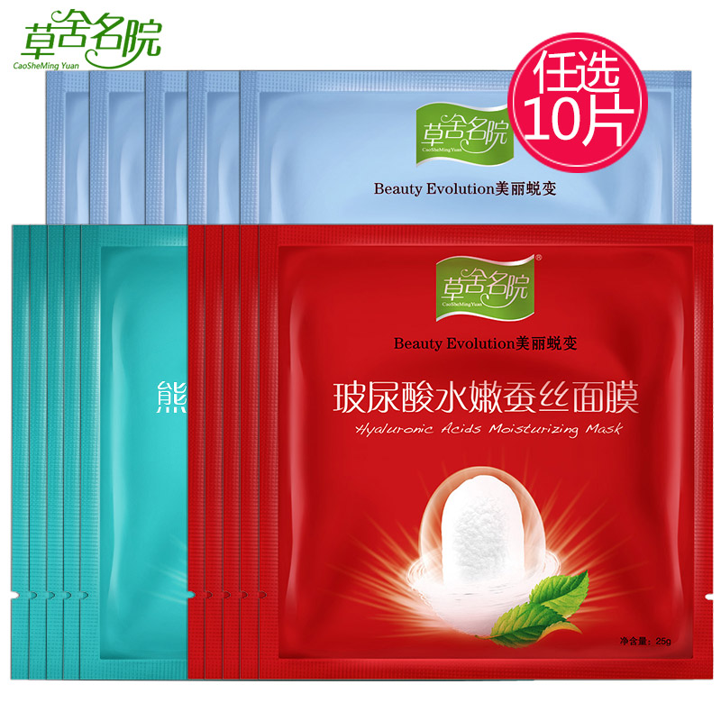 草舍名院玻尿酸水嫩冰蚕丝白皙保湿传明酸嫩白补水面膜贴25g*10片