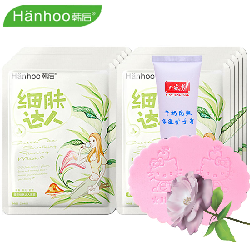 韩后护肤 绿茶细肤达人面膜贴22ml*10片 补水平衡细孔紧致面贴膜