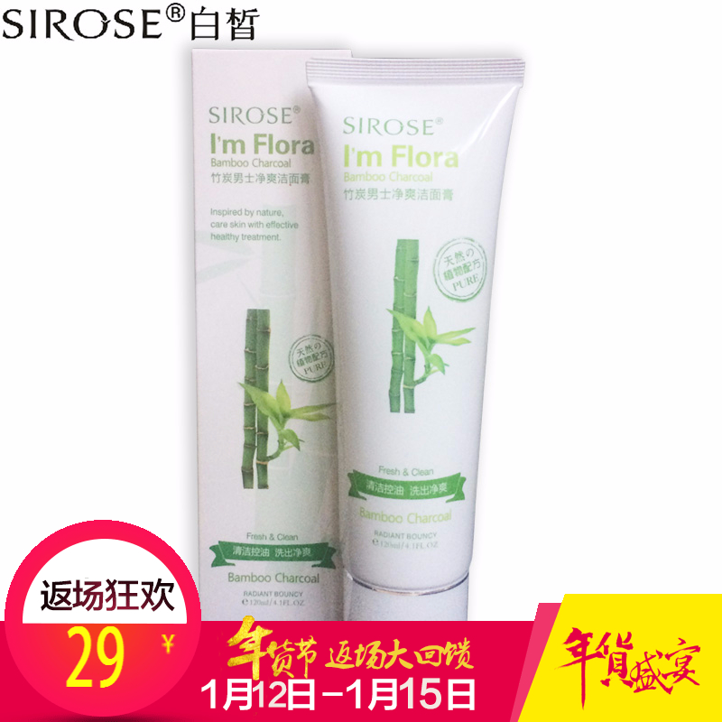 SIROSE/白皙竹炭男士净爽洁面膏120g 深层清洁 控油收毛孔 洗面奶