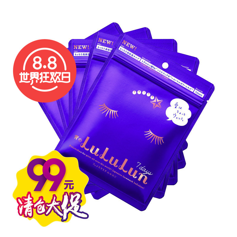 Laox香港直邮日本lululun补水保湿美白淡斑收缩毛孔面膜7枚蓝色*5