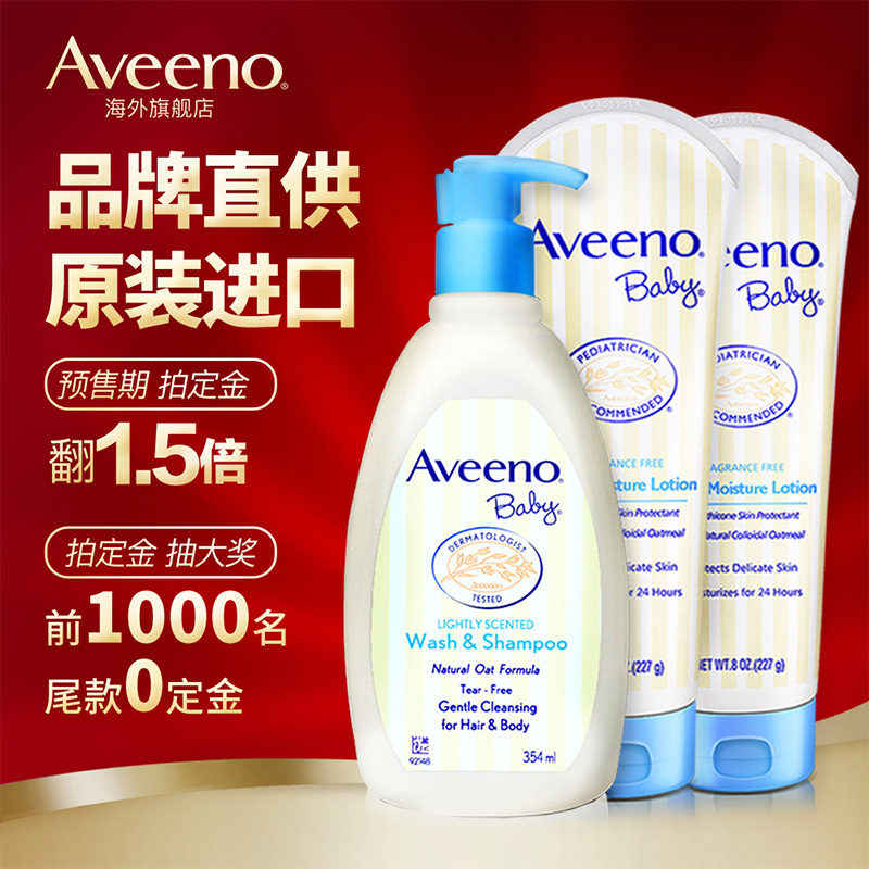 的热门产品aveeno艾惟诺燕麦baby修护宝宝霜抗敏感泡澡粉婴儿润肤沐浴露组合