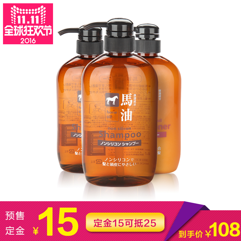 日本进口熊野油脂无硅马油洗发水600ml两瓶装 滋润修复防脱生发