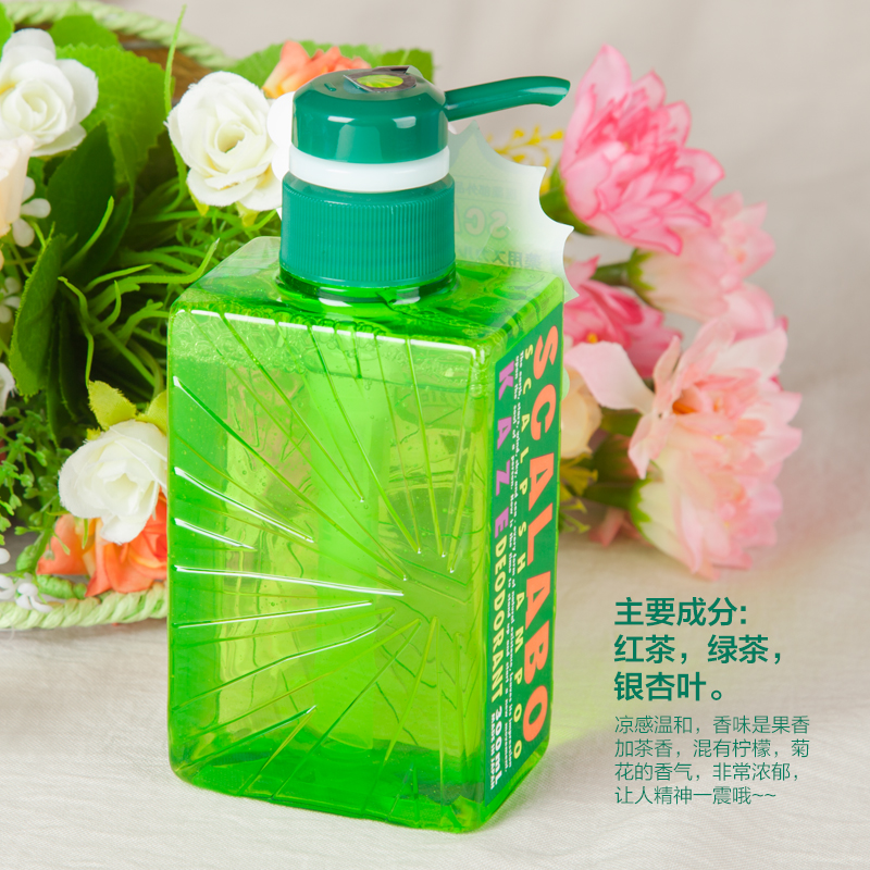 日本进口Scalabo无硅油绿色洗发水300ml 养润修复型茶香果香