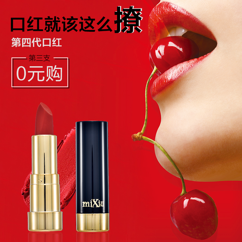 米修第三支0元口红持久保湿 不脱色姨妈色大红色橘咬唇妆唇彩
