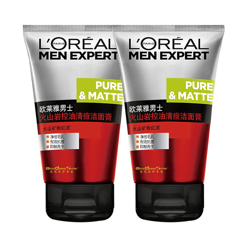 欧莱雅男士洗面奶火山岩控油祛痘印淡化去黑头补水保湿洁面乳套装