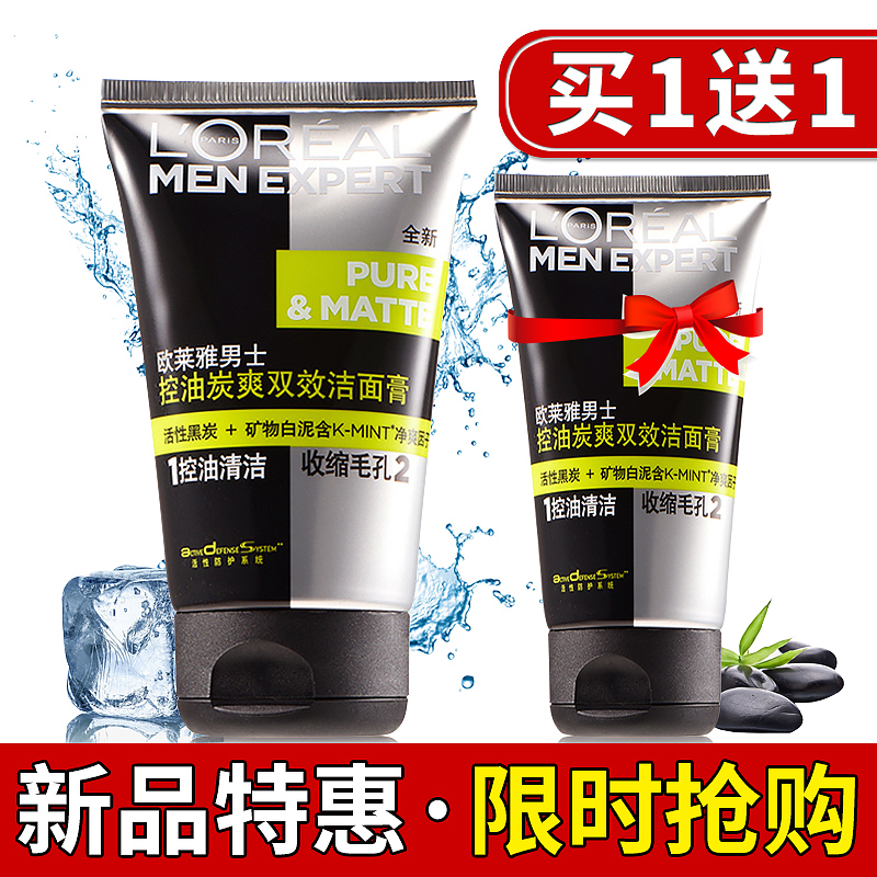 欧莱雅男士洗面奶控油祛痘印去黑头收缩毛孔洗脸去油洁面膏乳套装