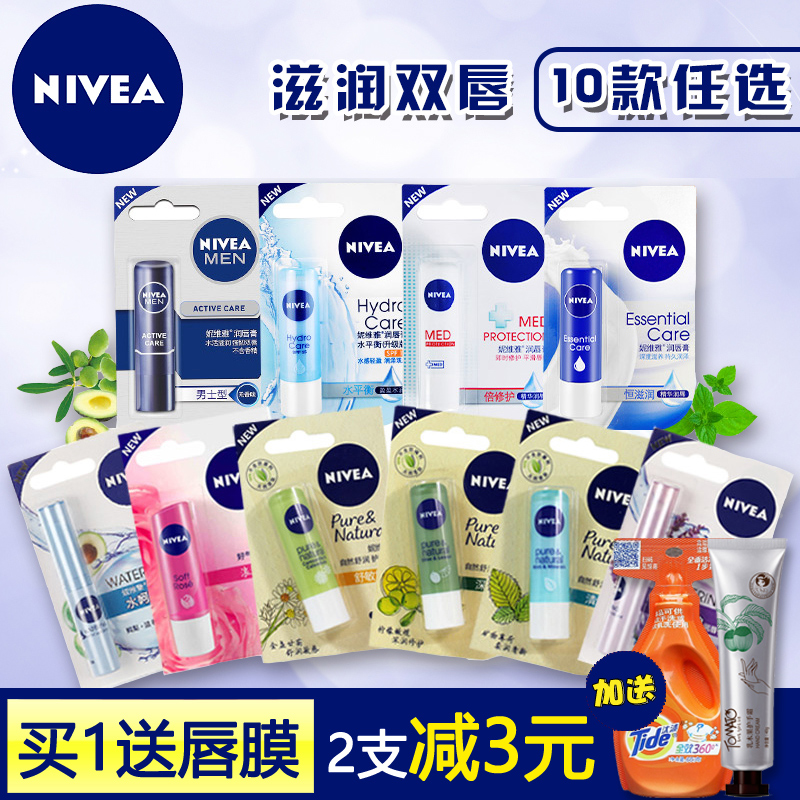 妮维雅男女士天然型润唇膏4.8G*2支 保湿滋润补水无色防裂护唇膏