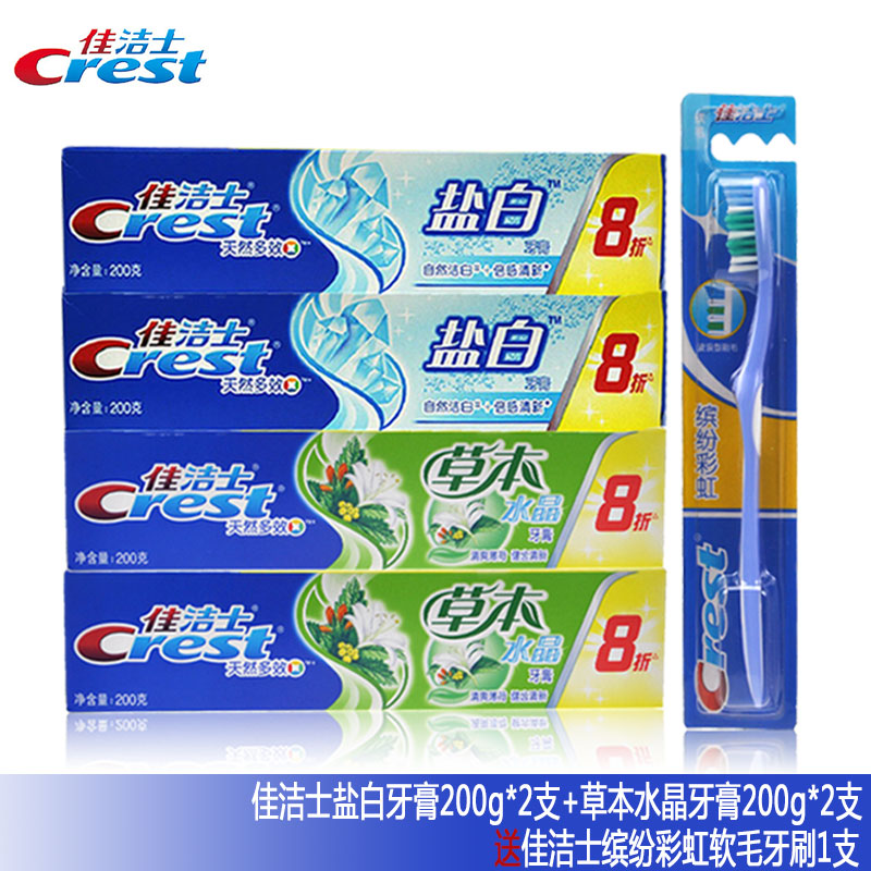 的热门产品佳洁士牙膏草本水晶200克八折装*2+盐白200克八折装*2送牙刷