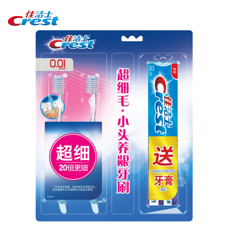 佳洁士超细毛小头养龈牙刷2支送3D炫白双效牙膏90g套装去污渍固齿