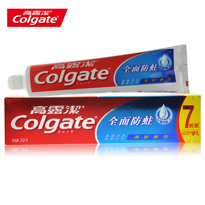高露洁全面防蛀牙膏250克7折装X1支清新香型固齿去渍护龈清洁