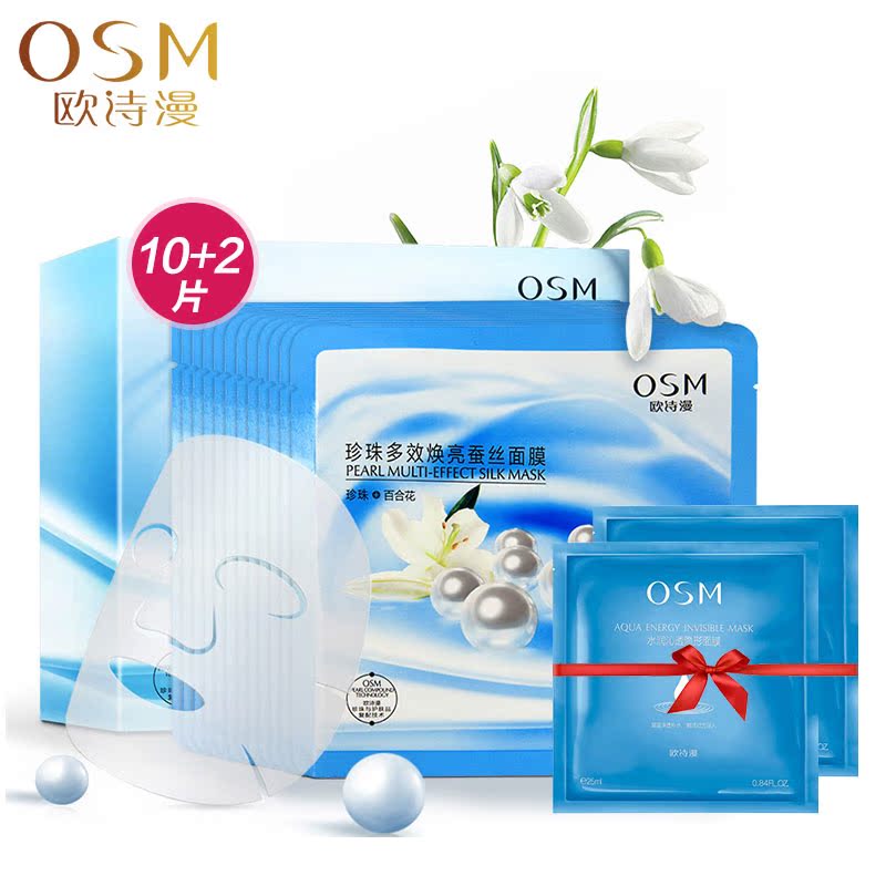 欧诗漫面膜珍珠多效焕亮蚕丝面膜贴10片补水保湿收缩毛孔面膜贴女