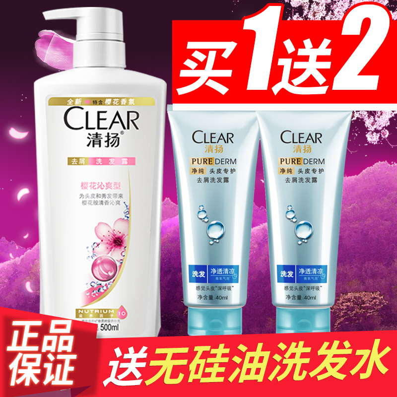 正品清扬男女士樱花味去屑止痒洗发水露洗头膏女套装送无硅油包邮