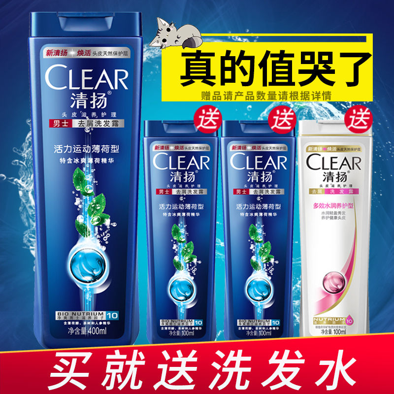 清扬正品薄荷去屑洗发水露洗头膏男士400ml沐浴露乳控油止痒套装
