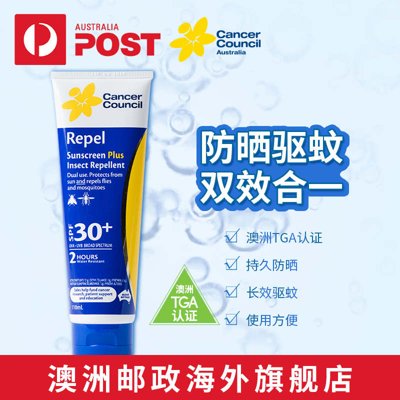 Cancer Council驱蚊防晒霜SPF30+110ml运动户外防紫外线防水防汗