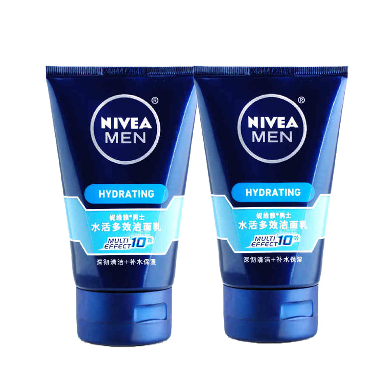 妮维雅男士洗面奶 水活多效洁面乳100gx2支保湿补水去油控油抗痘