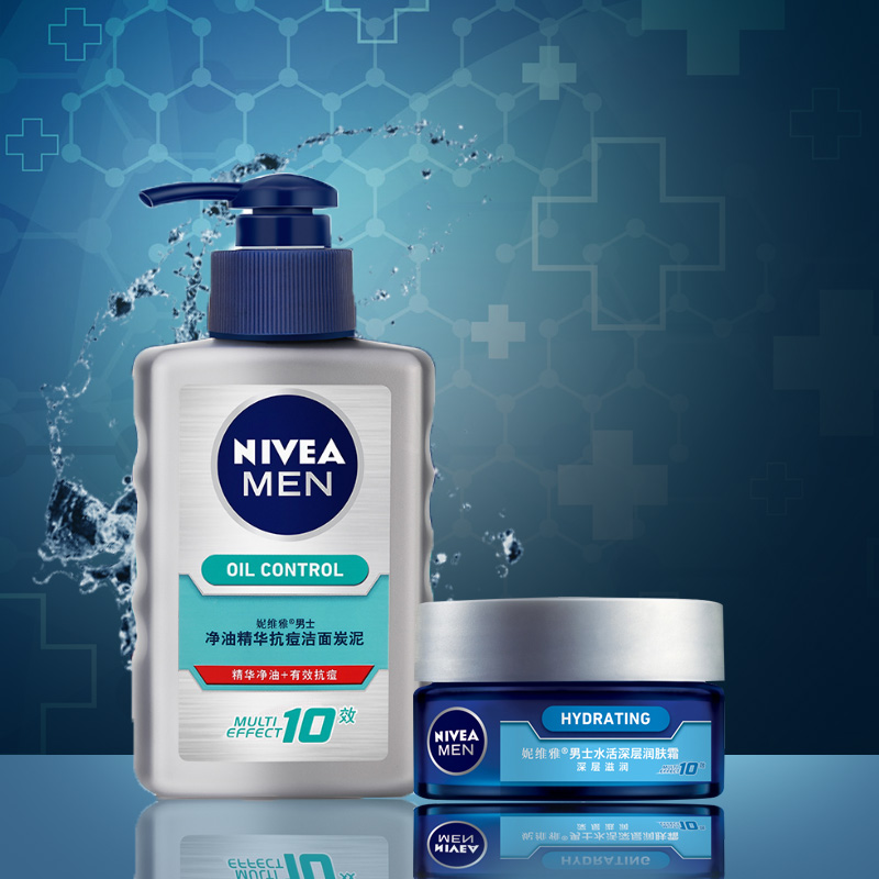 的热门产品Nivea/妮维雅男士洗面奶套装水活畅透精华露洁面液小蓝管补水保湿