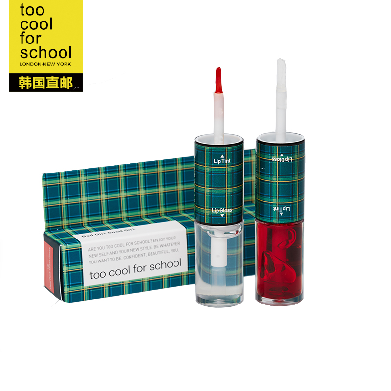 韩国too cool for school好女孩双头染色唇彩格子染唇液唇釉保湿