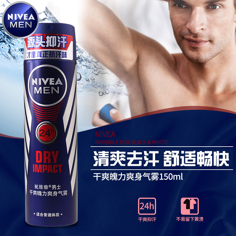 妮维雅男士干爽魄力爽身气雾150ml 香氛腋下止汗露香体抑汗喷雾剂