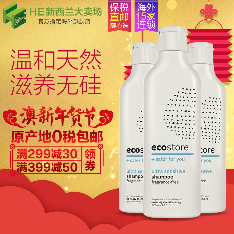 的热门产品【直邮】ecostore洗发水220ml*3天然无香洗发露无硅油新西兰进口