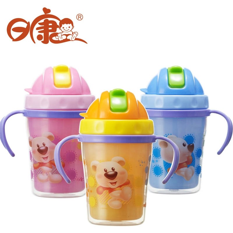 的热门产品日康双层吸管杯 软嘴宝宝训练水杯儿童喝水学饮杯带保温隔热3431