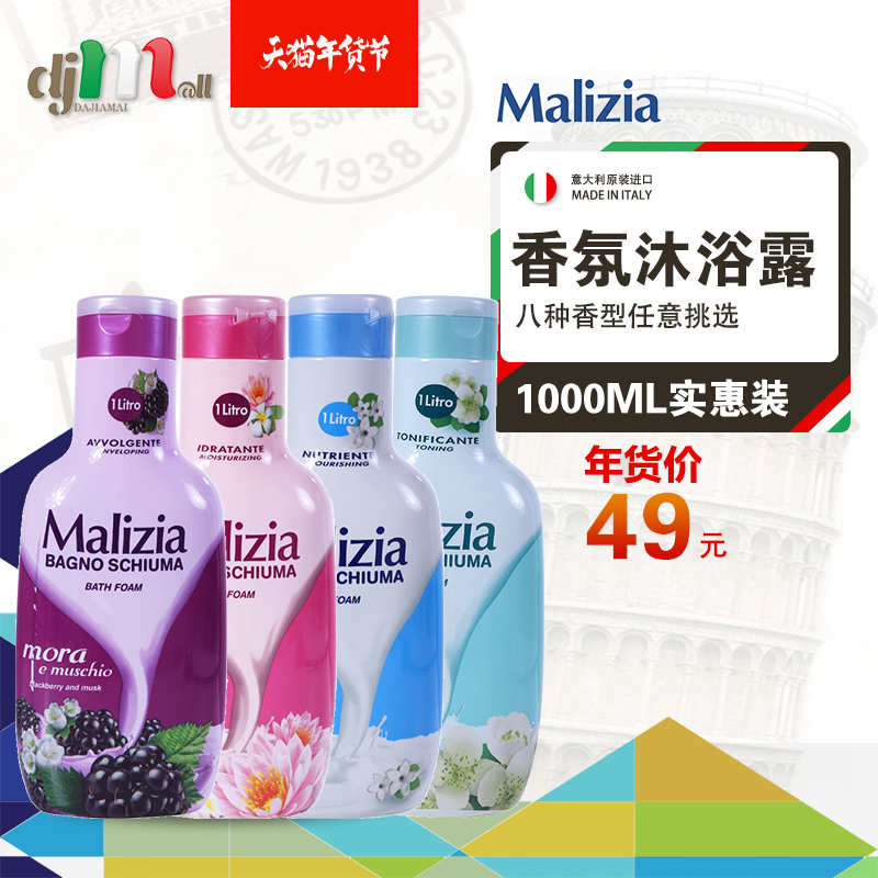 Malizia 意大利原瓶进口 家庭装保湿滋润亮白补水男女 沐浴露乳1L