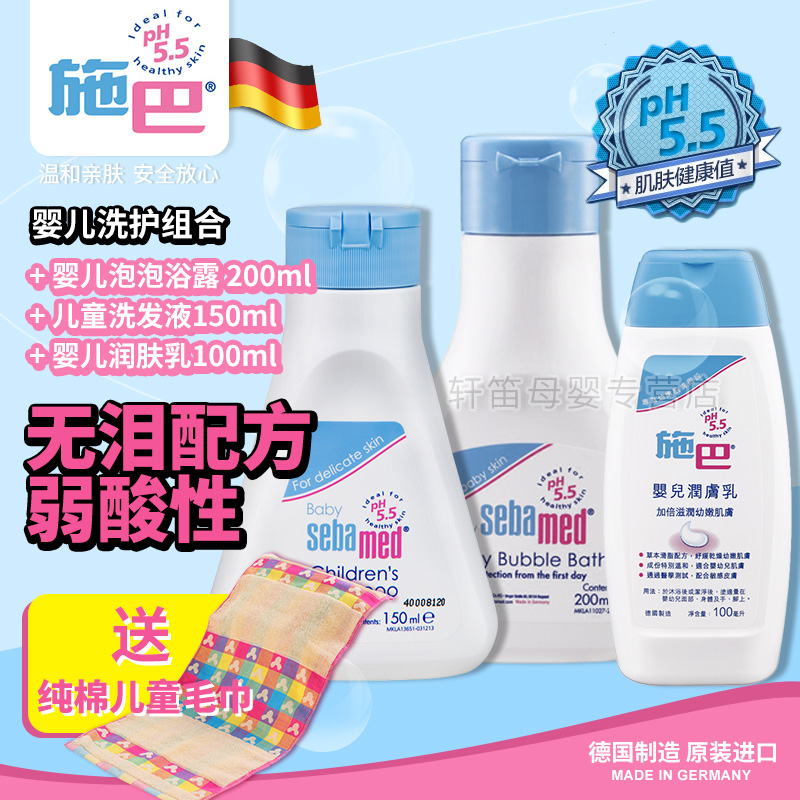德国进口施巴婴儿童泡泡浴露沐浴露洗发沐浴润肤组合套装宝宝洗护