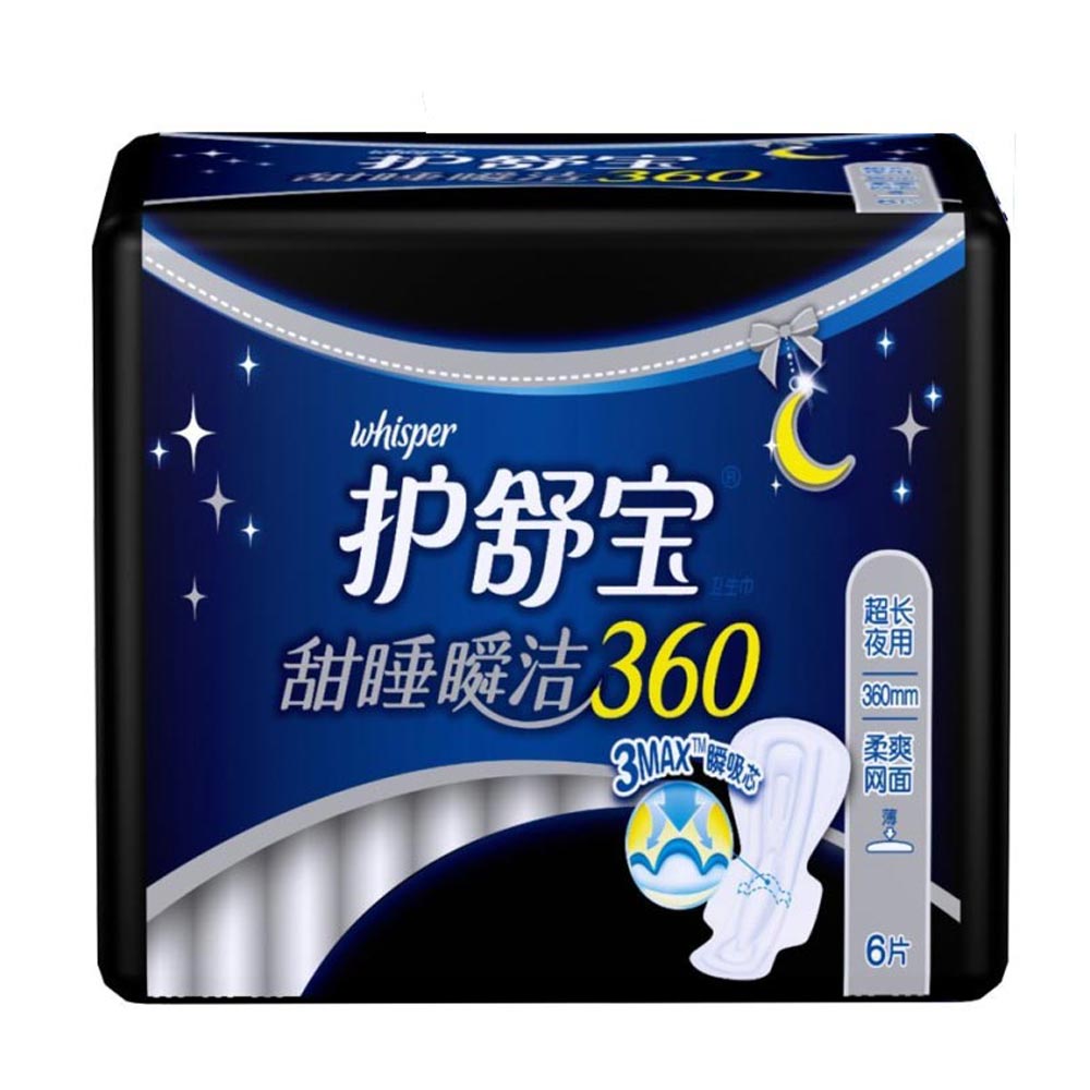 护舒宝超长夜用网面卫生巾6片360mm 甜睡瞬洁 防反渗 宝洁正品